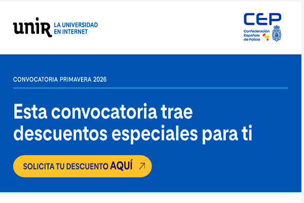 UNIR ha decidido mejorar los descuentos para los profesionales de las Fuerzas y Cuerpos de Seguridad, de tal modo, que tenéis un 45% de descuento garantizado el 1º año (independientemente del número de créditos que os matriculéis) y un 10% en los años sucesivos, en los grados de Derecho, Criminología, Ciencias Políticas y Administración Pública y el grado en Relaciones Internacionales.
